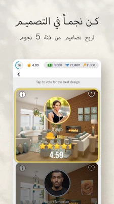 أطلق لخيالك العنان ليترجم رؤاك الجمالية إلى واقع ملموس مع Design Home. اكتشف عالمًا آسرًا حيث تتحول أحلامك في التصميم الداخلي إلى تحف فنية. يمنحك Design Home الفرصة لتصبح مهندس الديكور الخاص بك، متمكنًا من إعادة تخيل وتأثيث كل زاوية في منزلك المثالي، من الغرف الداخلية الفاخرة وصولًا إلى تنسيق الحدائق الخارجية الخلابة. إنه ملاذك المثالي لاستكشاف أرقى الأساليب وأحدث صيحات الديكور، مضفيًا لمسة من الأناقة والاحترافية على كل مشروع تصميم تخوضه.