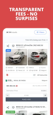 عزز كفاءتك التشغيلية مع ميزة "الباحث الذكي"، التي تحفظ معايير بحثك وتخطرك فورًا عند توفر مركبات مطابقة على eCarsTrade. قدم عروضك بثقة باستخدام حاسبة العروض البديهية لدينا، المصممة لتحسين فرصك في الفوز مباشرةً ضمن المنصة. فريق دعم العملاء المتفاني متعدد اللغات، والذي يتحدث أكثر من 10 لغات، بما في ذلك مدير حسابك الشخصي، مستعد دائمًا لتقديم المساعدة. اختبر أقصى درجات الوضوح مع هيكل رسومنا الشفاف؛ ستحصل على نظرة عامة دقيقة على جميع التكاليف قبل تقديم أي عرض، مما يضمن عدم وجود مفاجآت خفية.