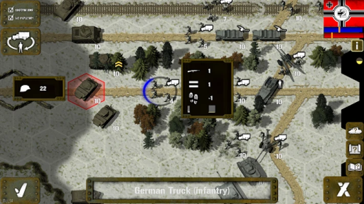 انغمس في عمق التكتيكات العسكرية مع نظام لعب يراعي أدق التفاصيل. قم بقيادة أربع فئات مختلفة من القوات، تتراوح بين المجندين حديثاً والجنود المتمرسين، لكل منها نقاط قوتها وضعفها التي يجب استغلالها بذكاء. استغل الهجمات الجانبية المفاجئة، وحرّك قواتك ببراعة استراتيجية، وشن نيرانًا غير مباشرة لتدمير دفاعات العدو العنيدة. لا تتجاهل تحليل المعارك المفصل الذي يقدم لك رؤى قيمة، واستفد من التضاريس المتعددة المستويات وكاسحات الألغام لتأمين طرقك أو نصب الكمائن، مع إمكانية صعود ونزول الوحدات من المركبات لإضفاء بعد إضافي على المناورات الميدانية.